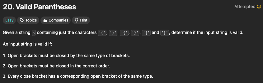 ์ด๋ฐ ๊ฒฝ์ฐ์ ์ฌ๋ ๊ดํธ ์์๋ก stack์ ์์์ฃผ๊ณ , ๋ค์ ์์ธ ์์๋๋ก ๊ฐ์ง๊ณ ์์ ๋ซ๋ ๊ดํธ ํ์ธํ๋ ๊ฑธ๋ก ํด์ผ๊ฒ ๋ค.
