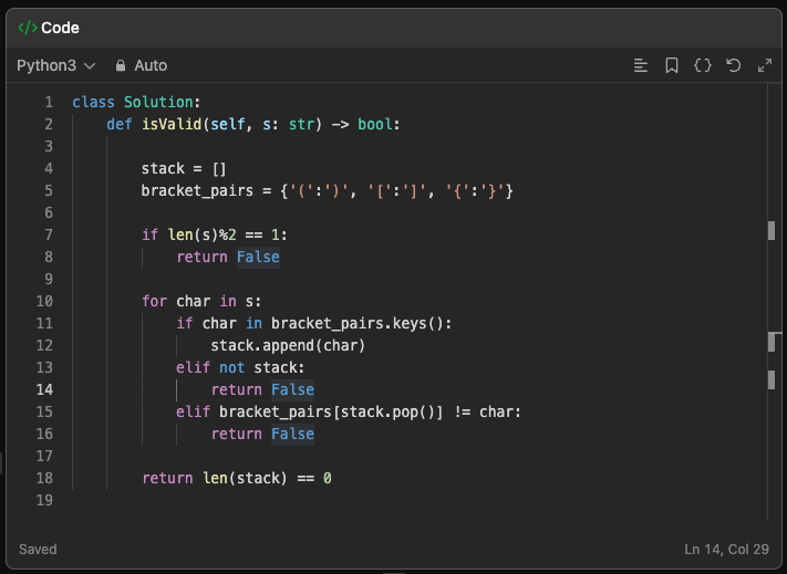 if char in bracket_pairs.keys(): # ์ฌ๋ ๊ดํธ์ด๋ฉด stack์ ์๊ธฐ